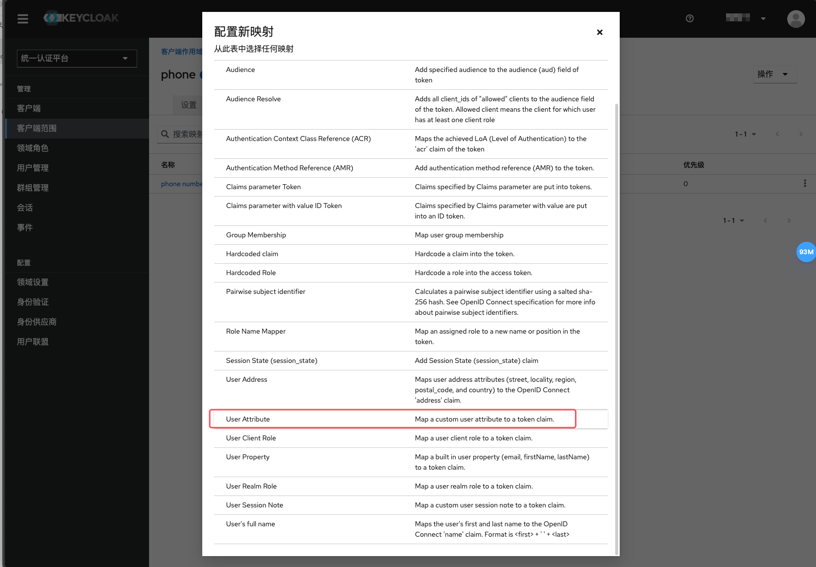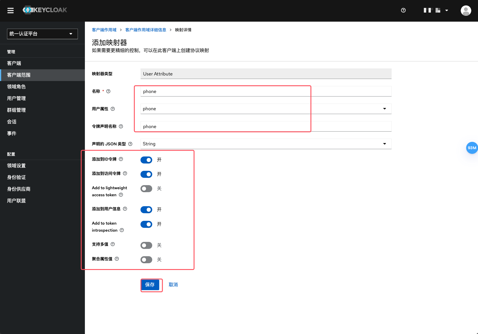 4) 名称随意,用户属性选择 phone,令牌名称就是获取到的名称