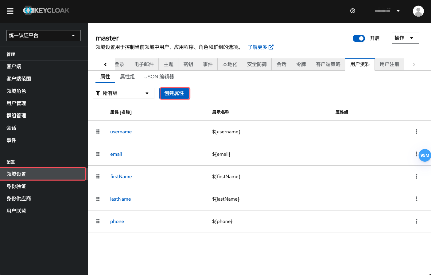 - 配置》领域配置》用户资料
