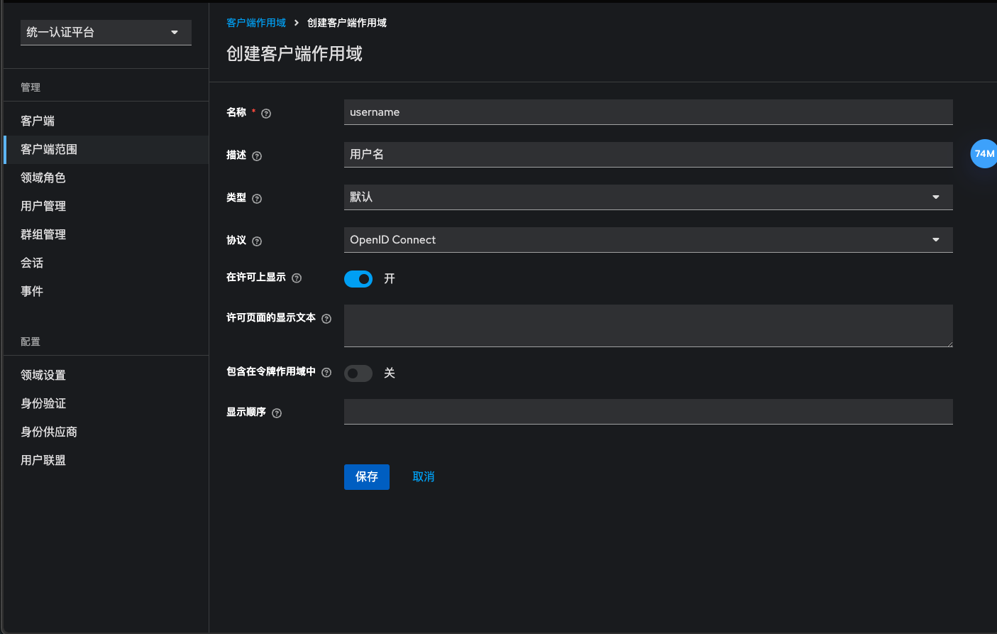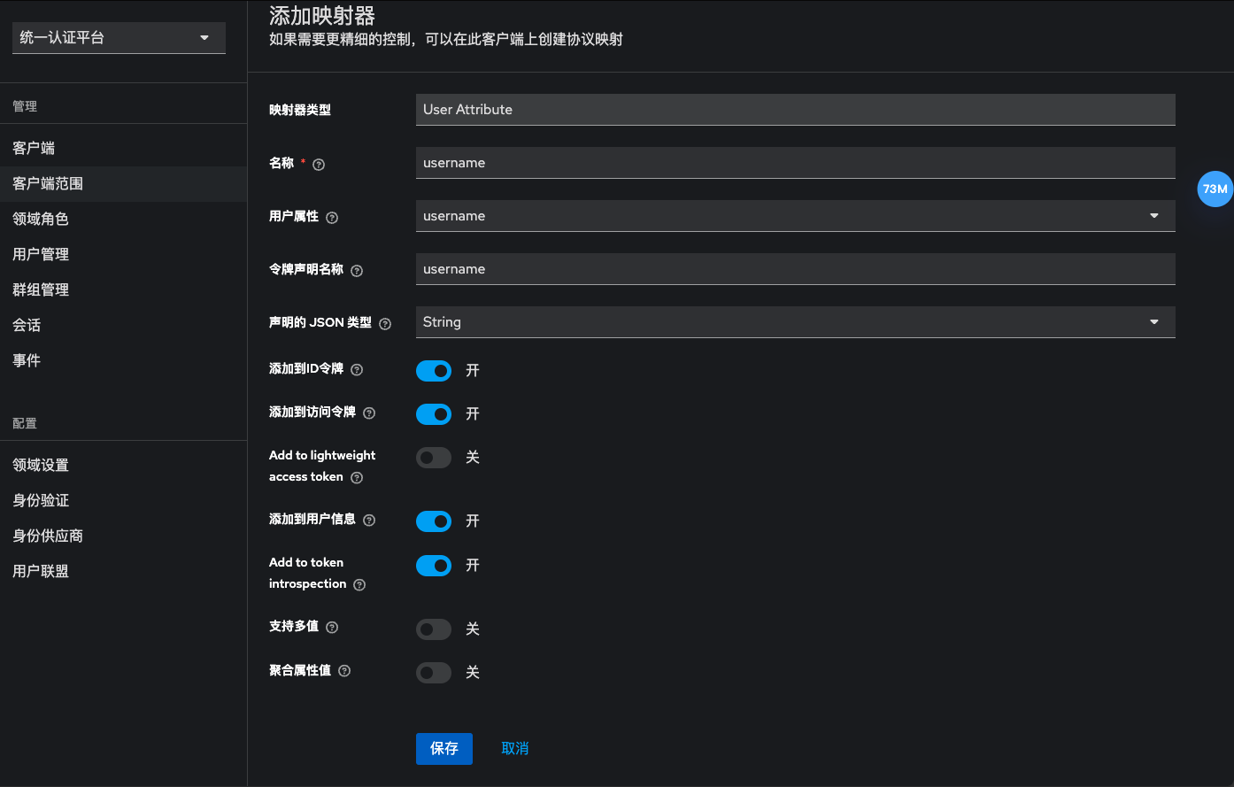 1)添加用户属性 客户端范围->创建客户端作用域